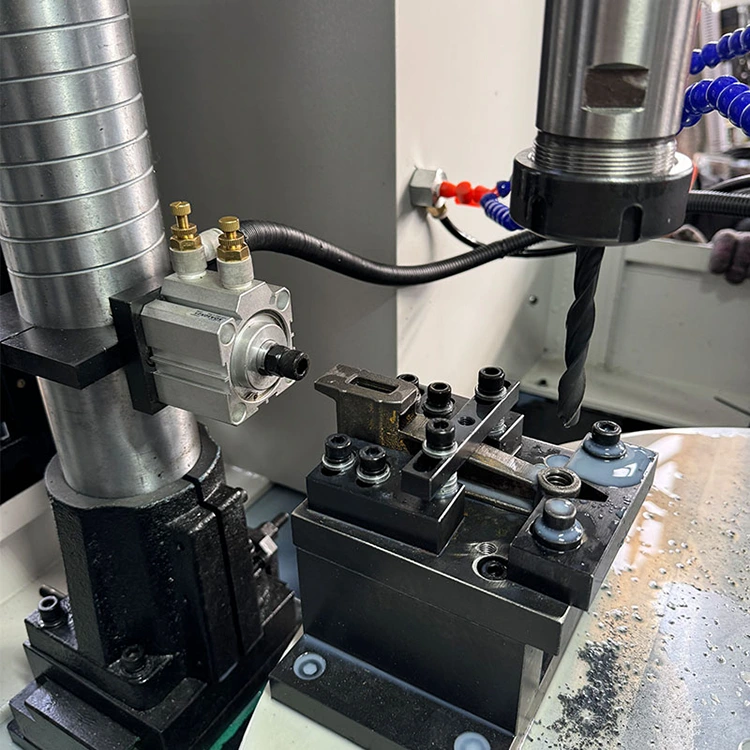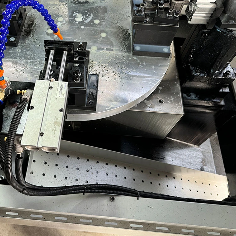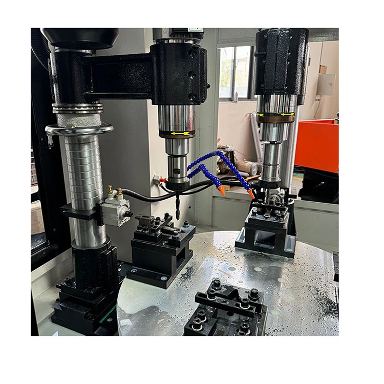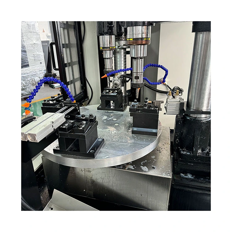 Senyawa Meja Putar CNC empat sumbu adalah stasiun kerja cerdas yang mengintegrasikan proses penggilingan, pengeboran, penyadapan, dan lainnya. Intinya adalah meja putar yang dilengkapi dengan sistem CNC empat sumbu dan empat spindel pemesinan. Artinya, empat benda kerja berbeda dapat diproses secara bersamaan atau berurutan, dan beberapa proses atau komponen dapat diselesaikan dalam satu siklus, sehingga sangat mengurangi jumlah waktu penjepitan dan waktu tunggu.